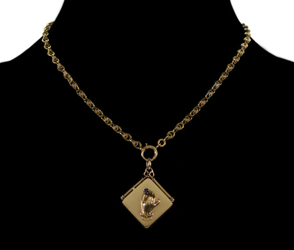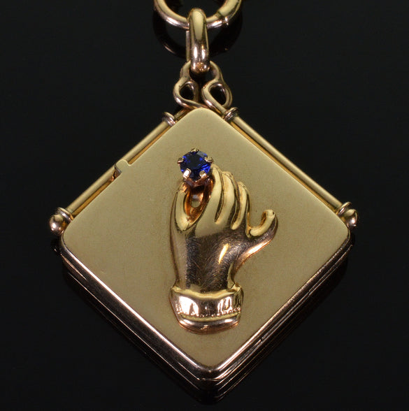 Victorian 10K Gold Hand Sapphire Locket Pendant C.1890