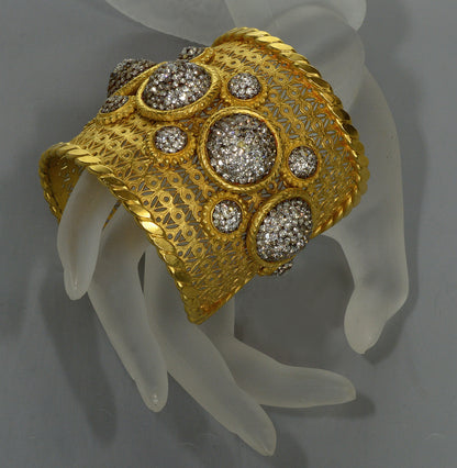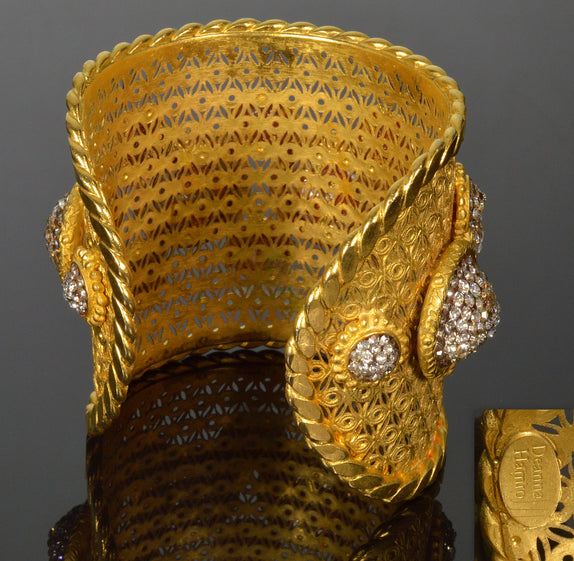 Deanna Hamro Etruscan Revival Cuff Bracelet Swarovski Crystals 80's