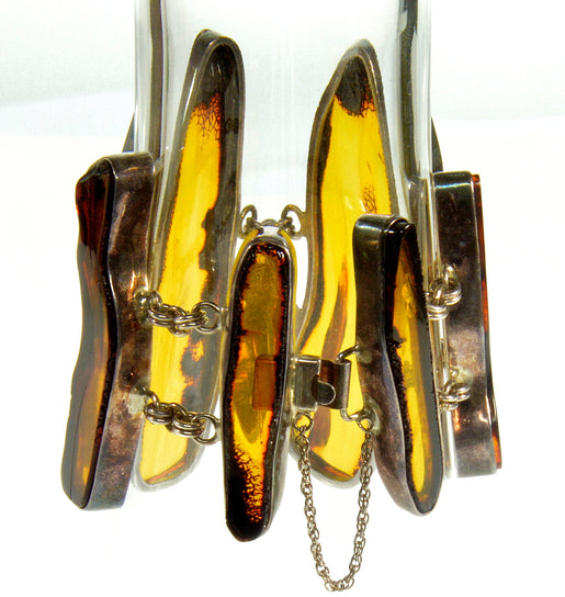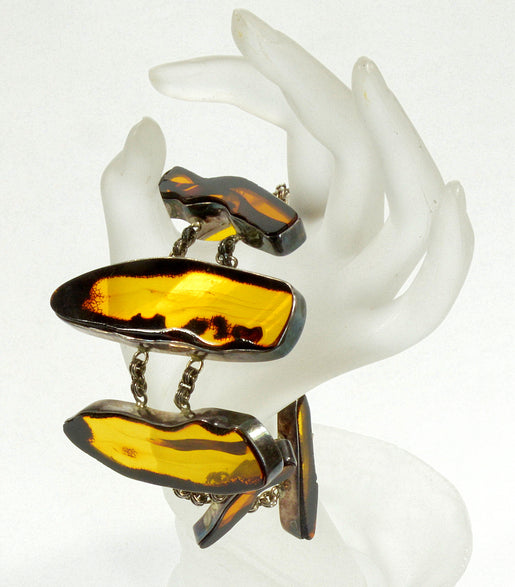 Vintage Designer’s Modernist Chunky Amber Sterling Bracelet