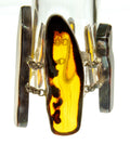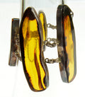 Polished amber chunks are set in 6 open back sterling bezel links of enormous size.