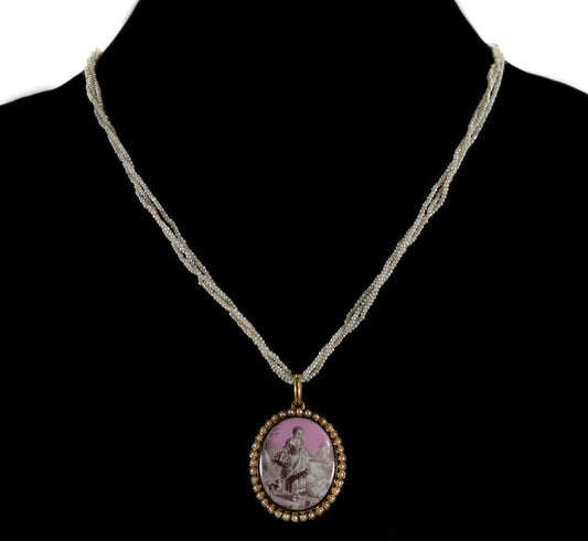 Antique Georgian 18K Gold Grisaille Enamel Pearl Pendant C.1790