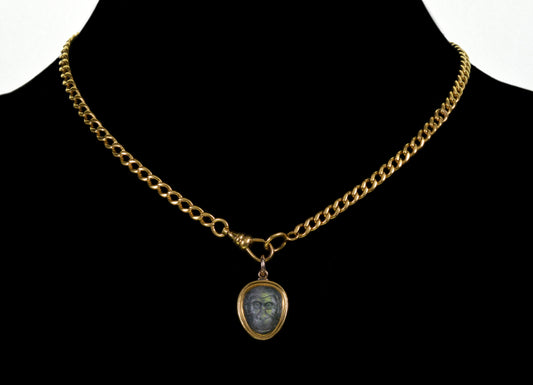 Georgian Carved Labradorite Monkey 9K Gold Pendant GF Chain Necklace C.1820