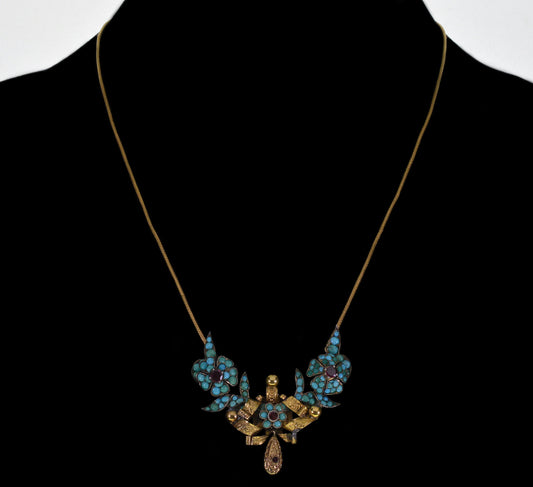 Georgian Persian Turquoise Garnet Gold Necklace C.1820 Antique
