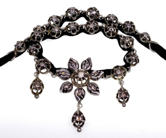 Reserved for S.C. Antique Georgian Diamond Sterling Ribbon Necklace Choker C.1760