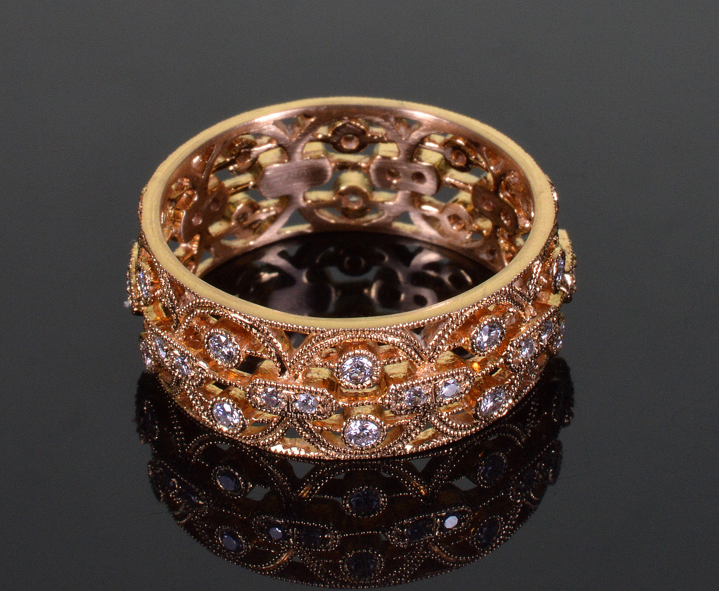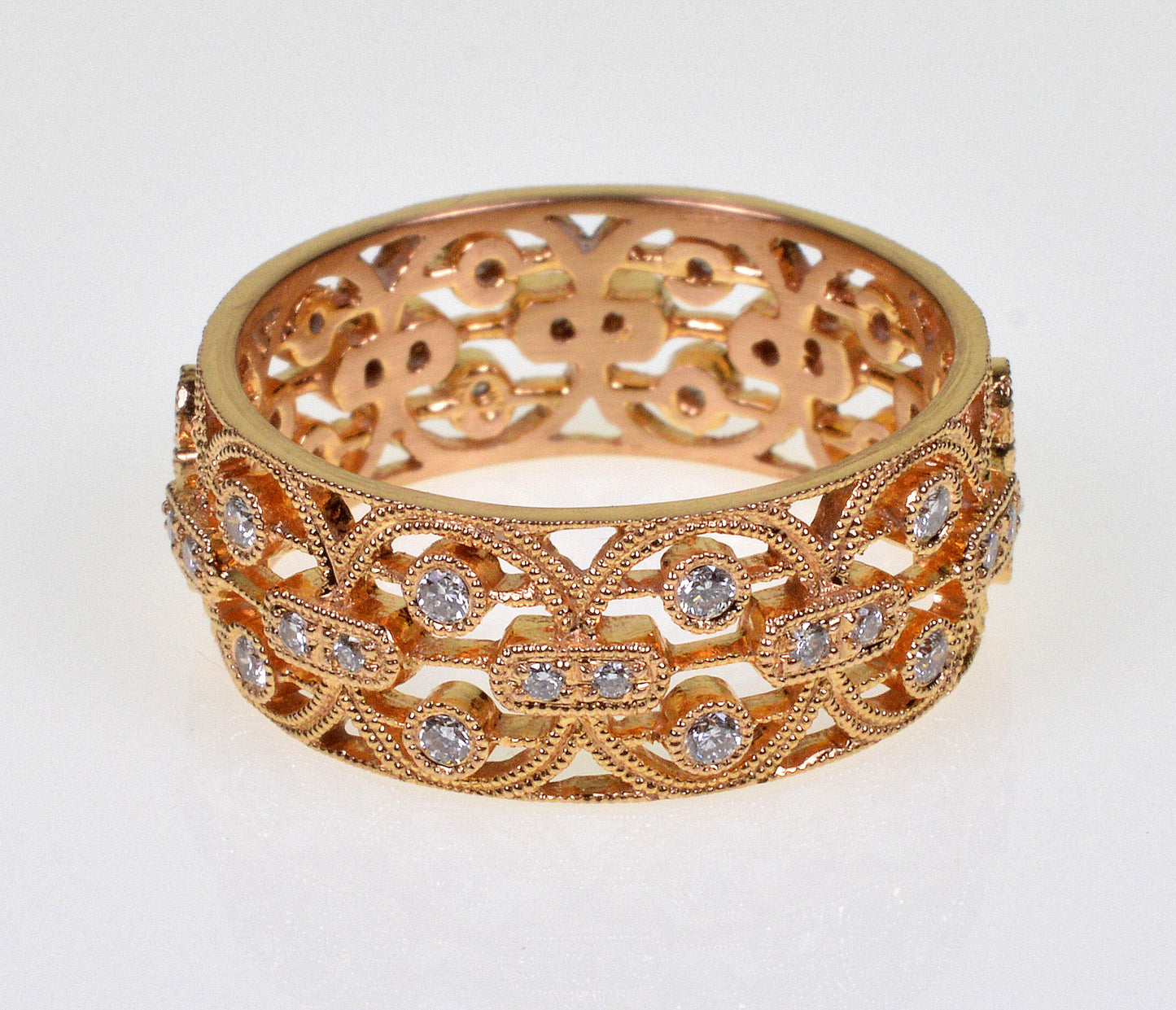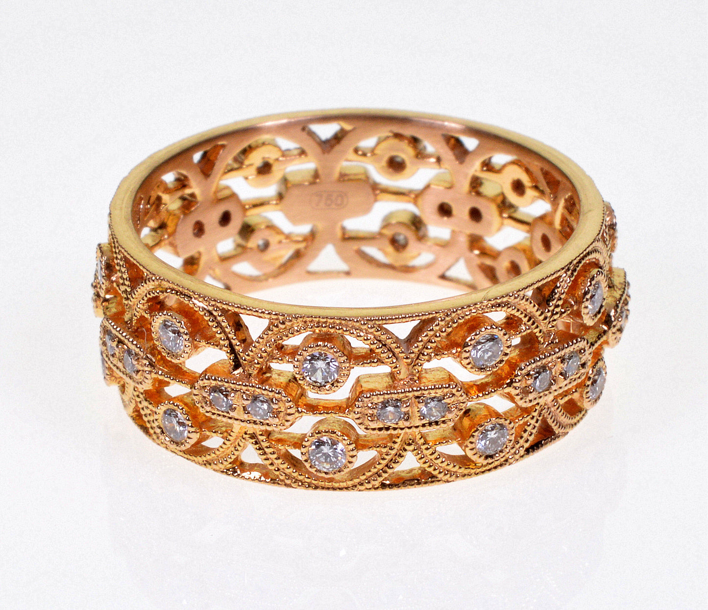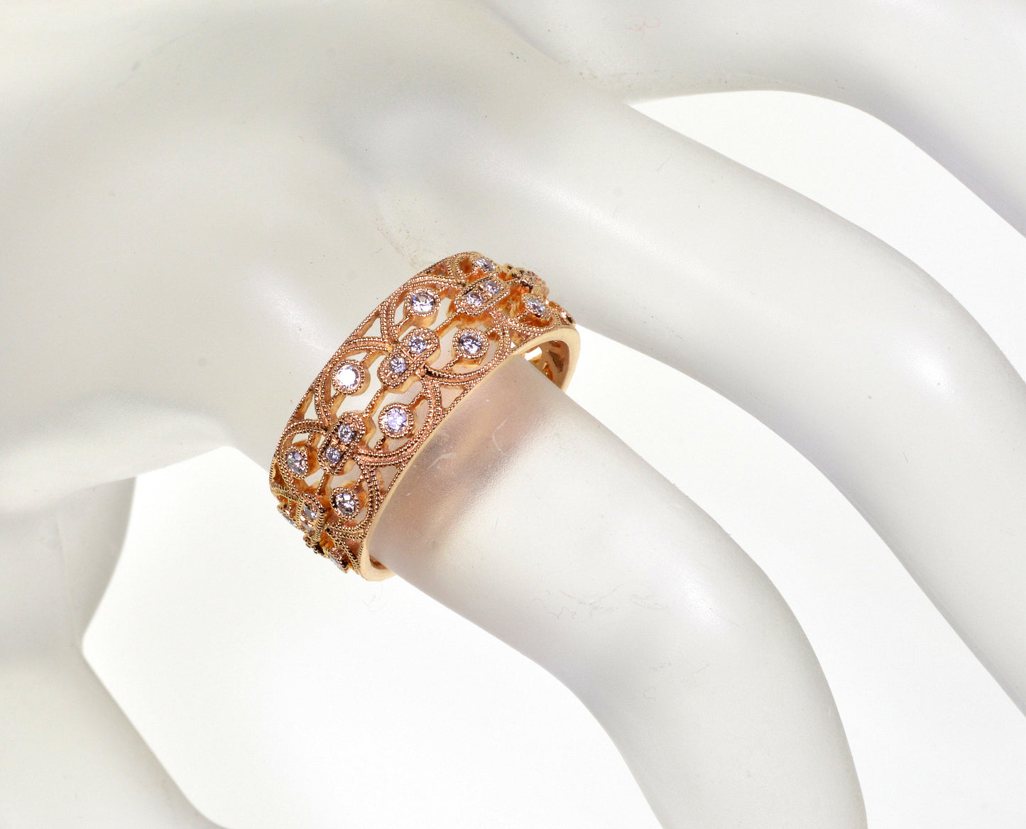 Estate 18K Gold Diamond Filigree Cigar Band Ring Size 7 1/2