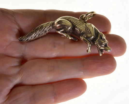 Antique Victorian Large Fox Fob Pendant Gold Over Sterling 2 1/4" C.1900