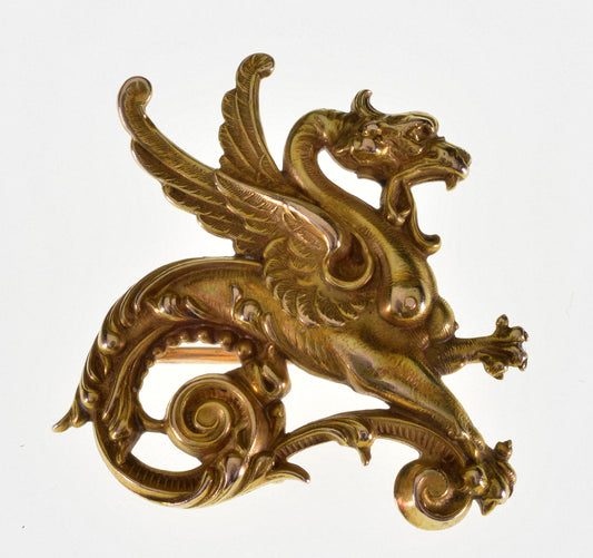 Reserved for R. Antique Art Nouveau 14K Gold Dragon Gargoyle Pin Brooch C.1900