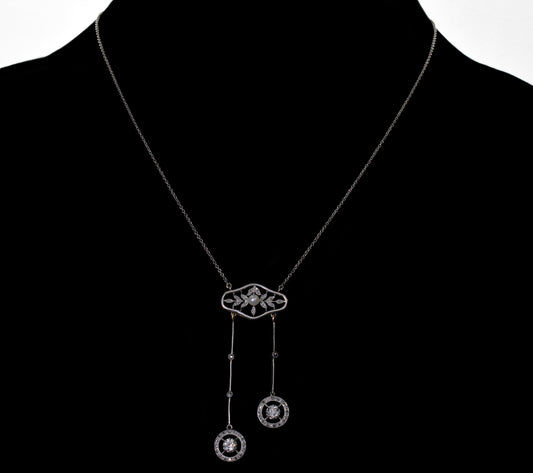 Antique French Belle Époque Negligee Necklace Platinum 14K Gold Old Mine Cut Diamonds C.1900