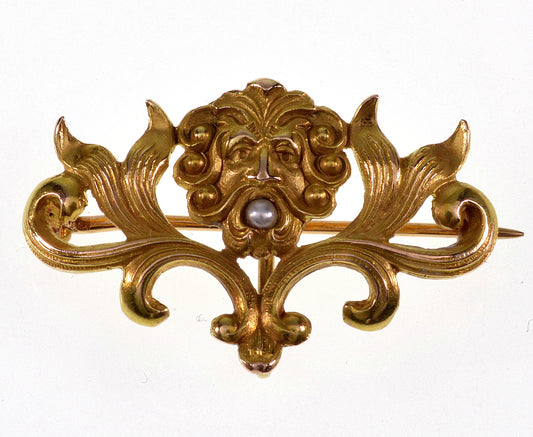 Antique Art Nouveau God Aeolus 14K Gold Brooch Watch Pin C.1900