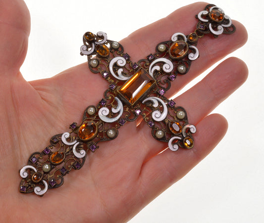Antique Austrian Enamel Silver Cross Pendant C.1900