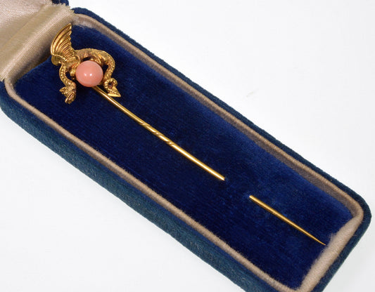Antique Art Nouveau 14K Gold Dragon Gargoyle Stick Pin C.1900
