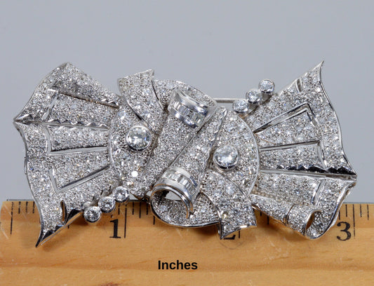 Antique Art Deco French Platinum Diamond Duette Brooch Fur Clip C.1920