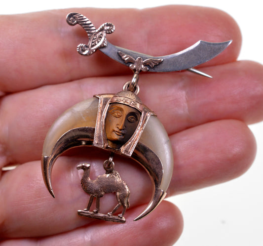 Antique Masonic Egyptian Revival 10K Gold Tiger Claw Tiger's Eye Pin C.1900