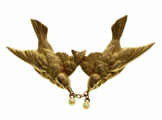 Antique French 18K Gold Love Doves Pair brooch Pin C.1890