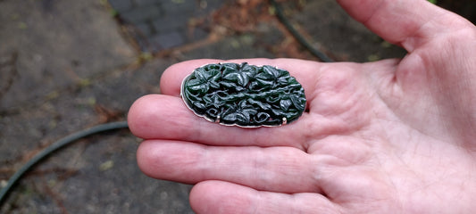 Antique Art Deco Jadeite Jade 10K Gold Brooch Pin C.1920 Signed