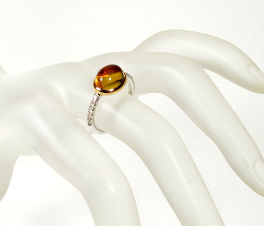 Mimi Milano Italian 18K Gold Diamond Citrine Ring Size 6 3/4