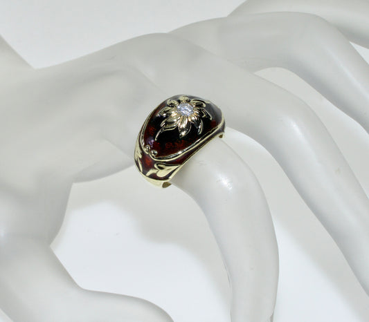 Estate 14K Gold Diamond Enamel Cocktail Ring Size 5 1/4 C.1980