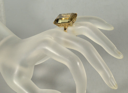 Retro 18K Gold Citrine Cocktail Ring Size 8 1/2