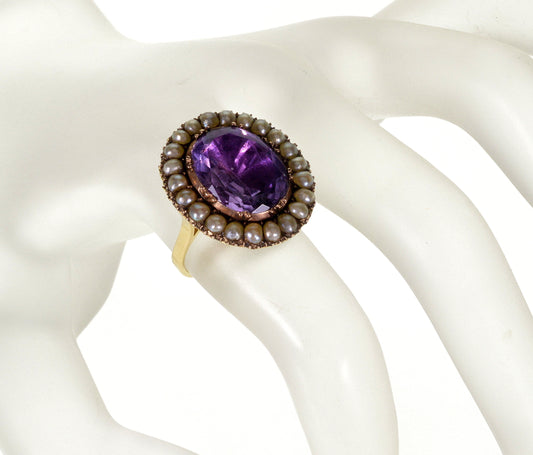 Antique Georgian 14K Gold Amethyst Pearl Ring Conversion Size 7 1/2 C.1820
