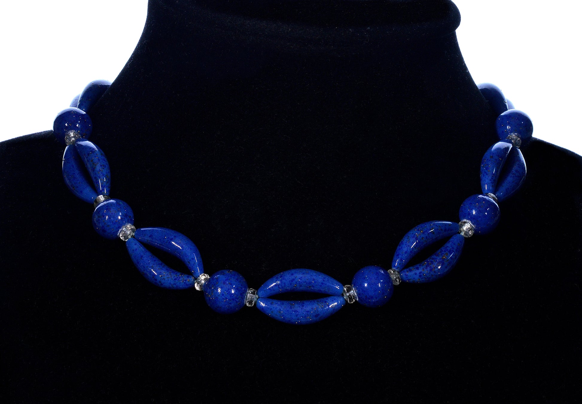 The necklace's main feature is its high-quality Czech art glass beads,