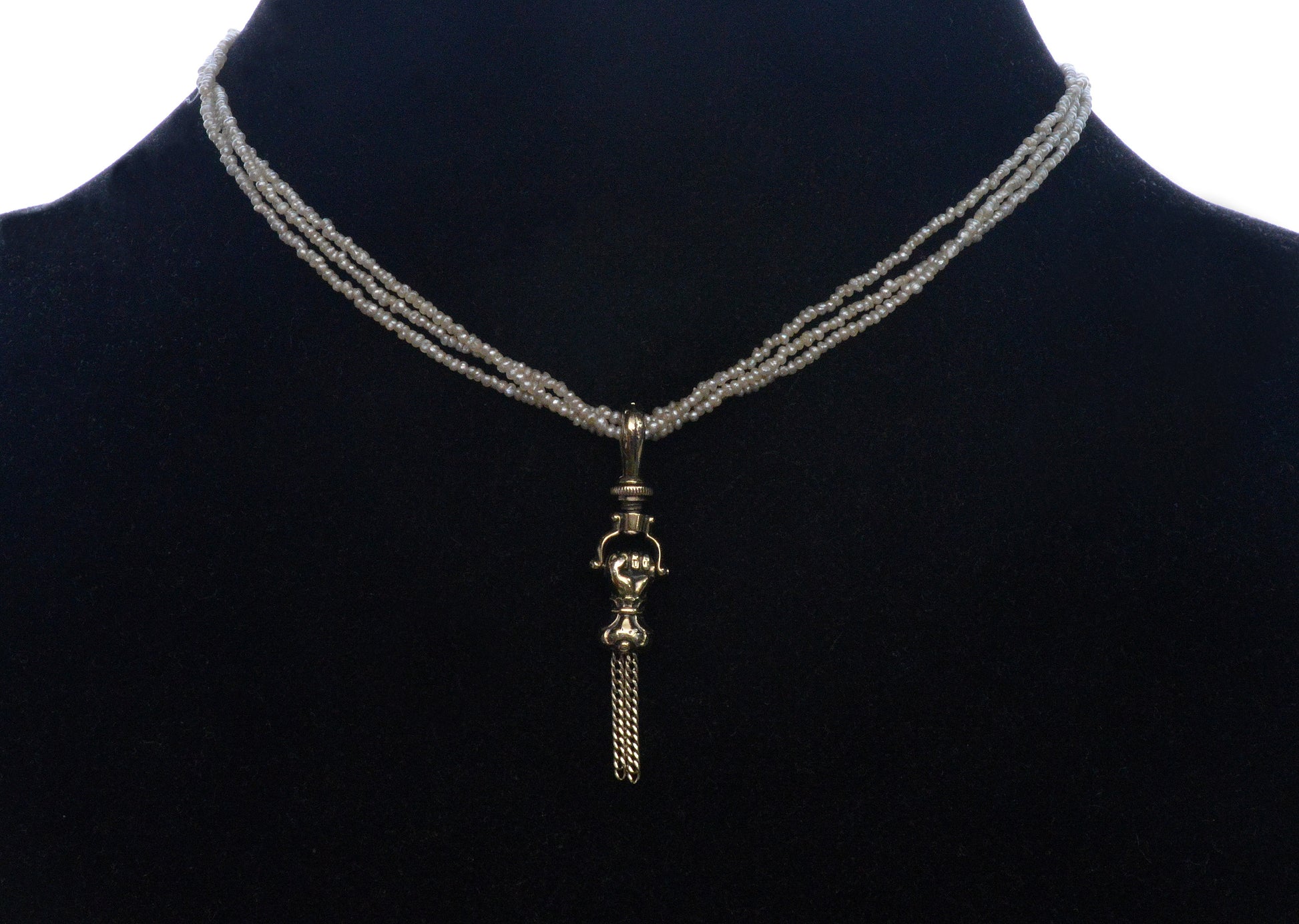 The seed pearl necklace shown for display only.