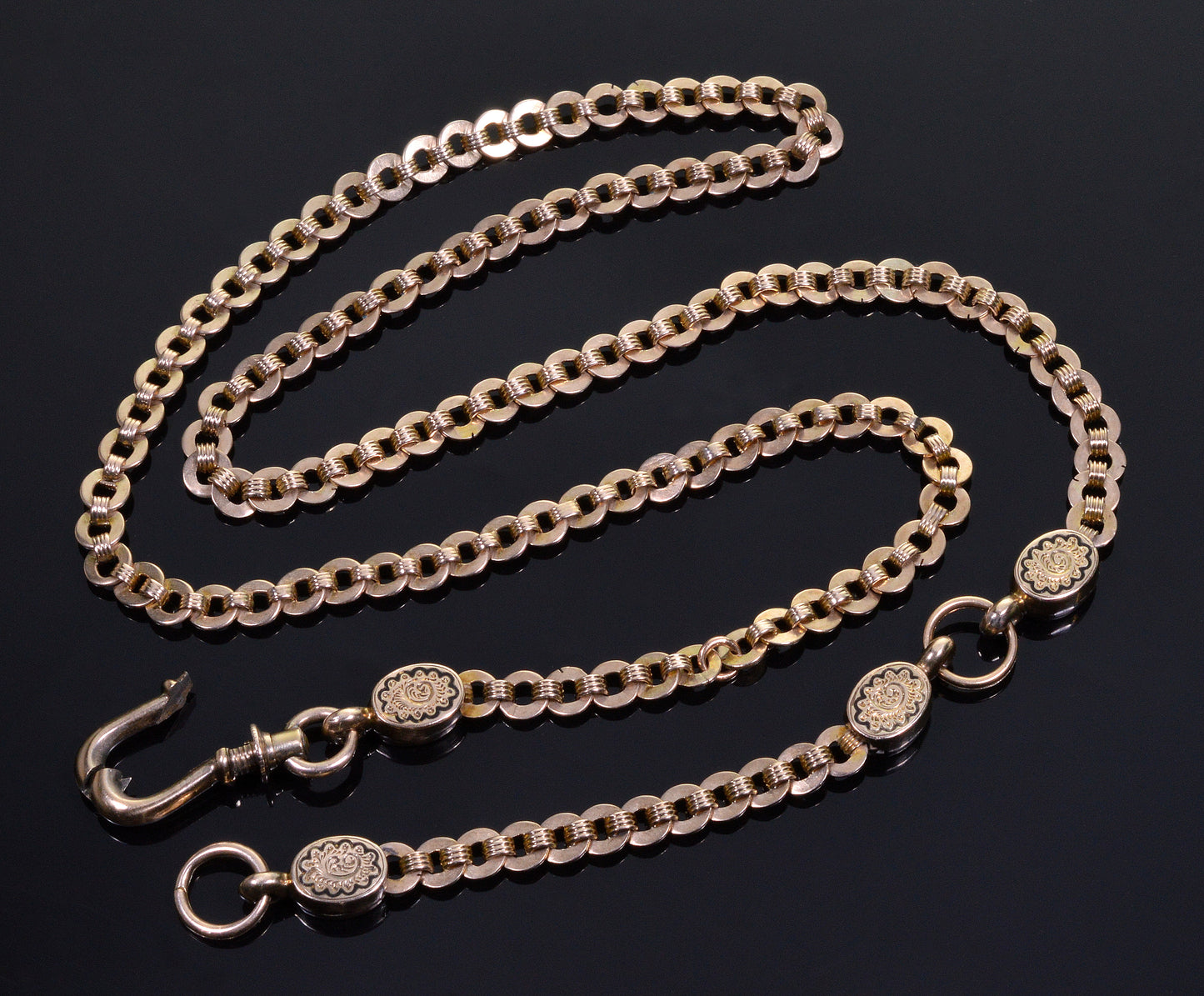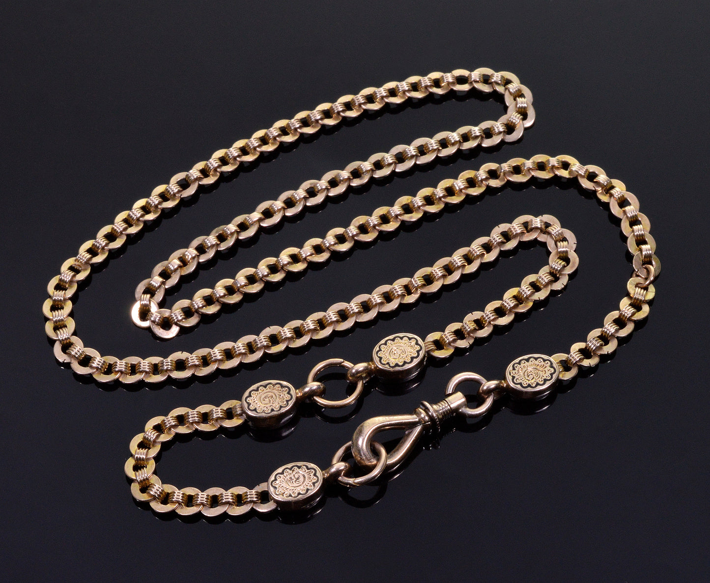 Splendid Victorian 10K gold enamel fancy link chain necklace C.1860.