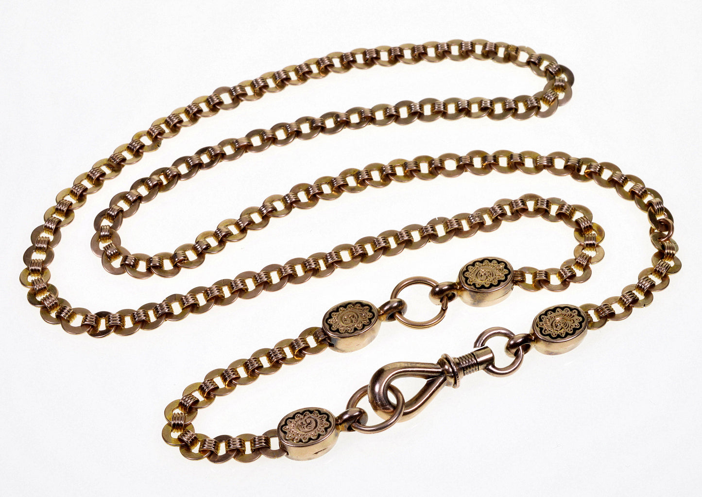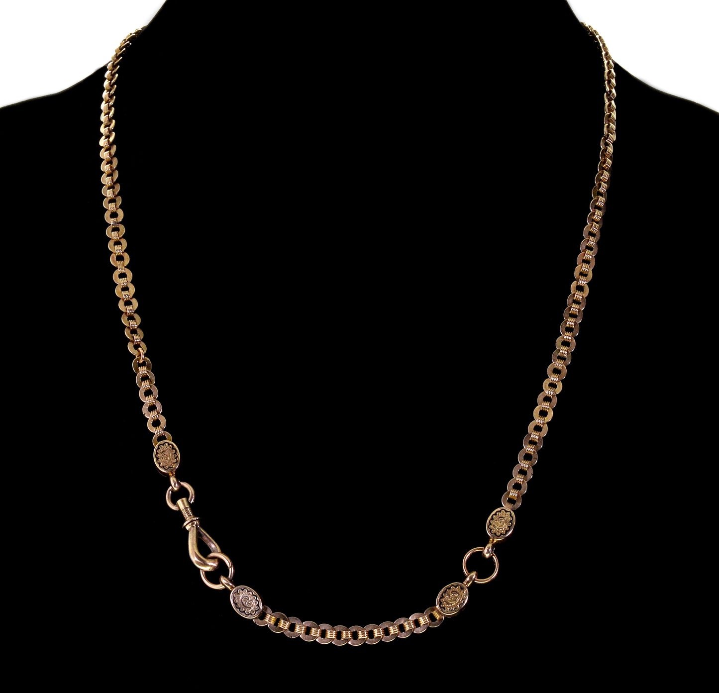Antique Victorian 10K Gold Fancy Link Necklace Old Dog Clip Clasp C.1860