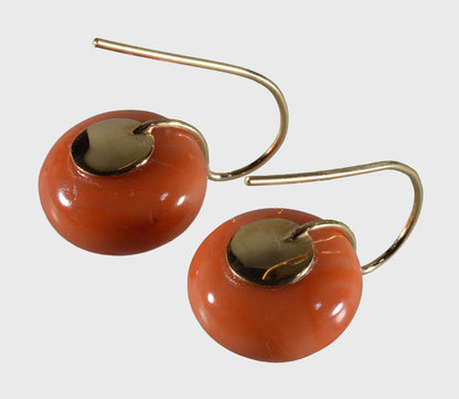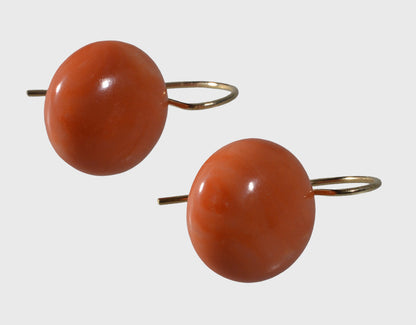 Gorgeous 14K gold Mediterranean salmon coral button earrings.