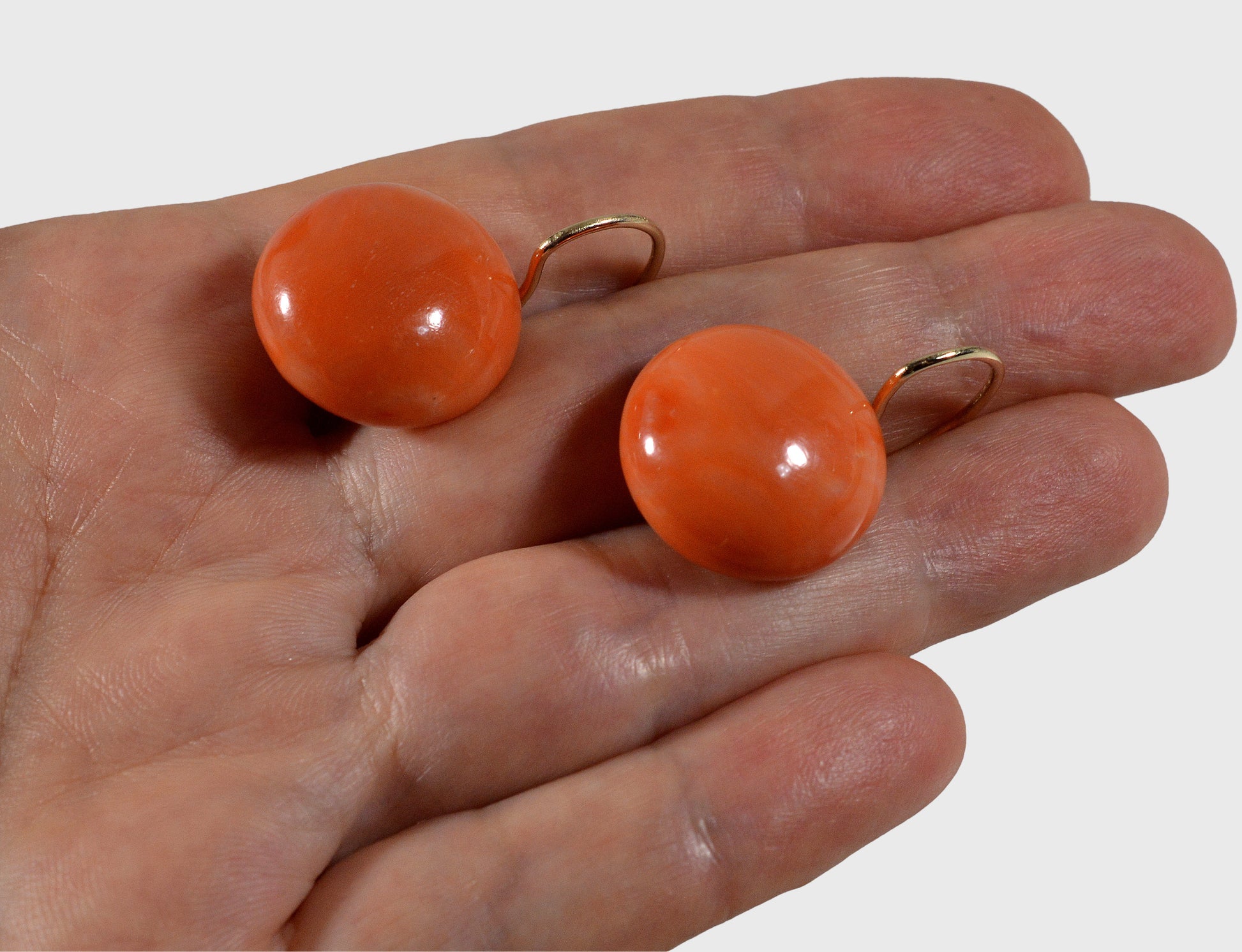 Reserved for K. Estate 14K Gold Large Salmon Coral Earrings