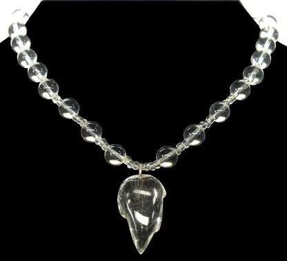 Rock Crystal Rutilated Quartz Leaf Pendant Necklace C.1950